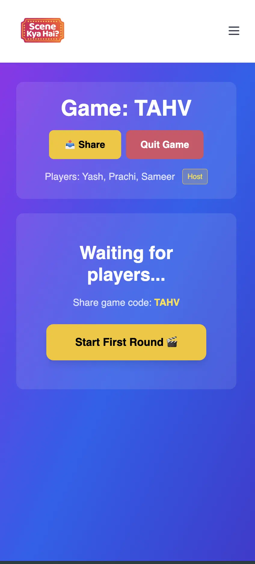 Pick your filmi nickname, share the room code, and gather the crew.